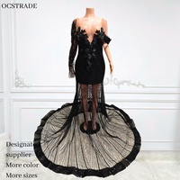 Ocstrade Robe longue en maille cloutée de luxe avec strass noir élégant diamant Vente à chaud Robes pour femmes Robes de soirée