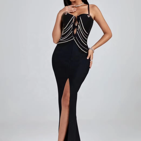 חסידות אופנה נשים בגדים סקסי מסיבת תחבושת סקסית שמלת פנינה גזירה את רצועת ערב נשף הנשף עם 2025 מפוצלים