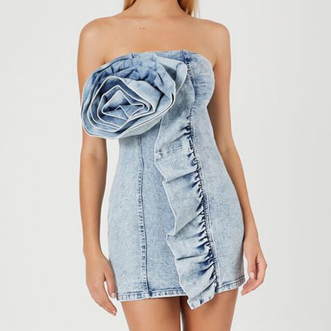 מתפוצים חדשים שמלות ג 'ינס כחול לנשים נשים בנות 3d פרחים תלת מימדי סקסי בגדי גוף ג' ינס